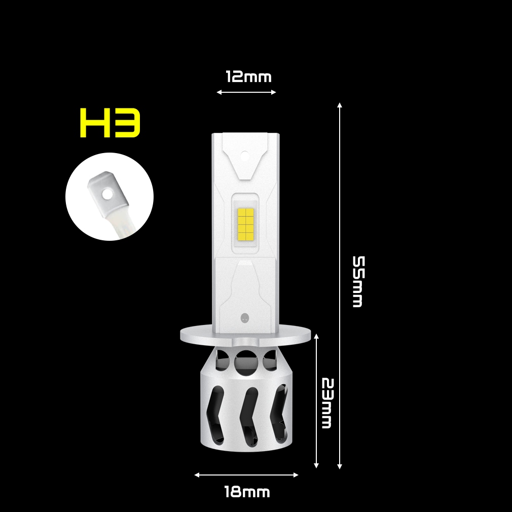 - Унікальний дизайн з Система охолодження турбіни в корпусі, що дозволяє встановлювати всюди, де інші модифіковані світлодіодні лампи H3 не підходять