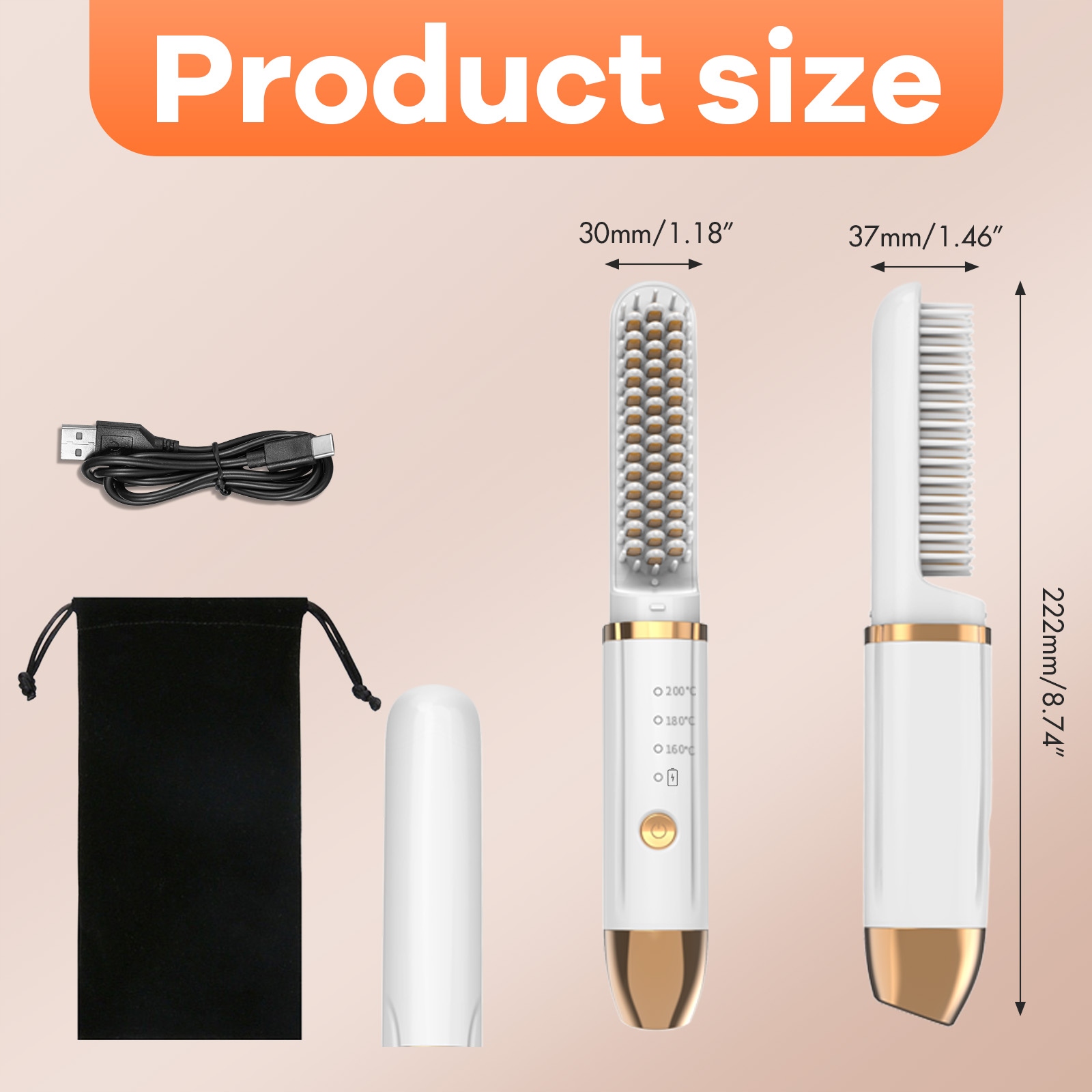Портативний бездротовий гребінець для випрямлення волосся є ідеальним супутником у подорожах на вихідні та у справах, його можна легко упакувати у вашу косметичку.