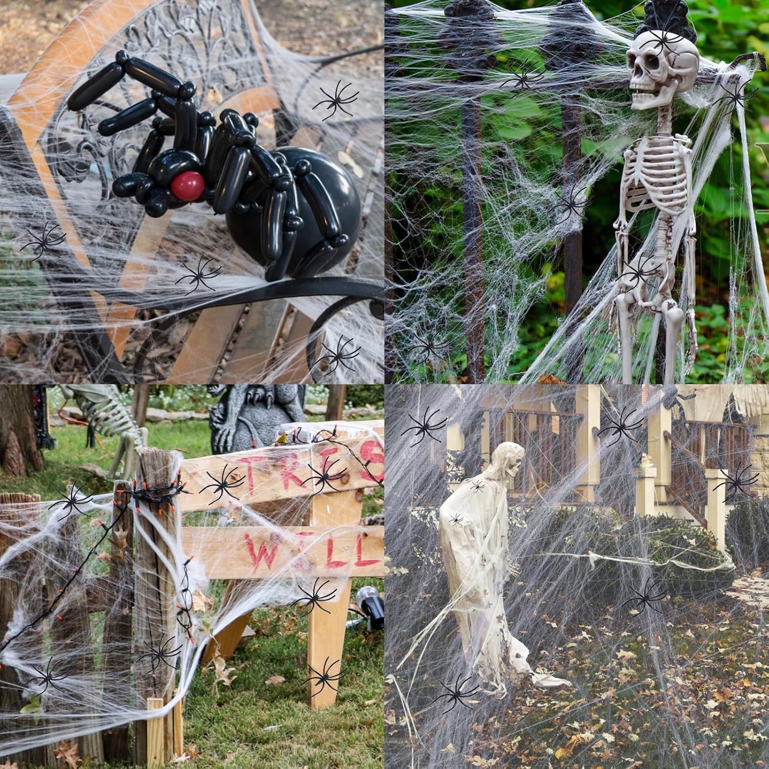 Мережа може бути вільно розтягнута і обмотати її стінами, дверима, вікнами або меблями. Після повіслення з павуками це схоже на справжнє, створюючи справжню і темну атмосферу жаху. 🕯