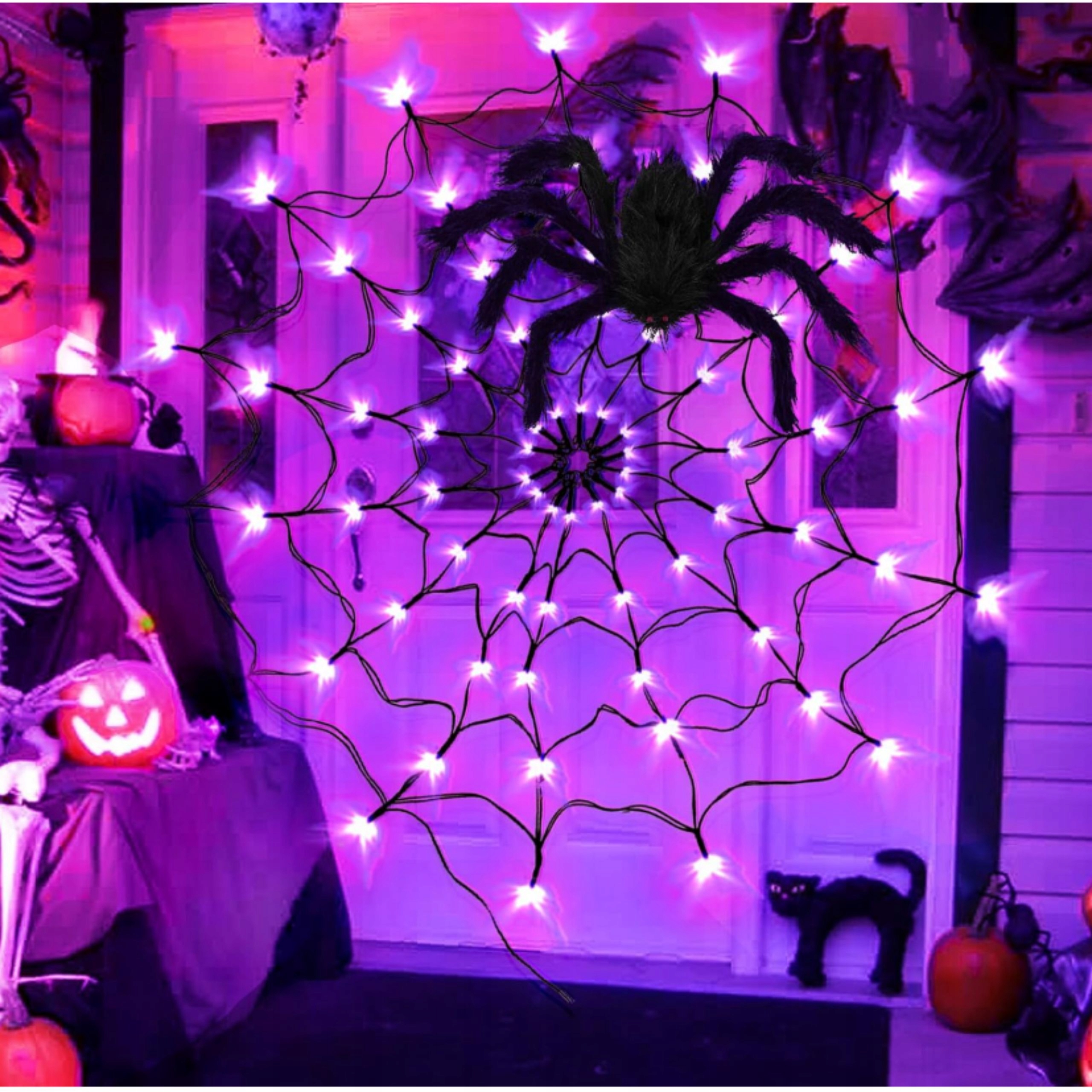 🎃 декоративна павутина з теплими світлодіодними лампами - ідеально підходить для Хеллоуїна, тематичних подій або осінніх домовленостей.