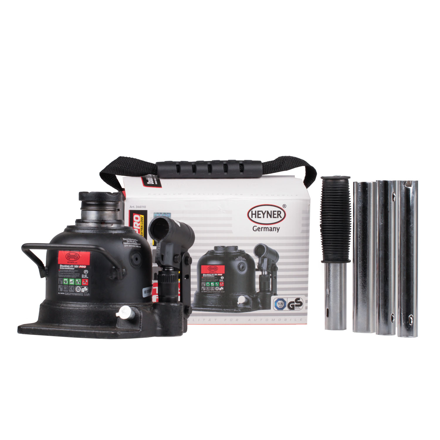 Вага продукту становить приблизно. і постачається з сумкою для зберігання. Низька вага та компактний розмір, Heyner Premium Hyd. Підйомник простий у транспорті і тому ідеально підходить для використання в майстерні, вдома або в дорозі.