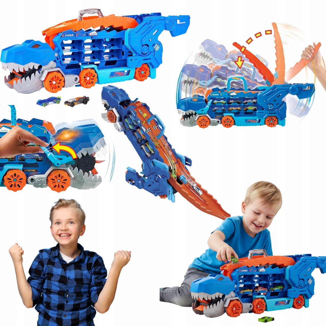 HOT WHEELS HOTWELS МЕГА КОМПЛЕКТ ВИСУВНОЇ ДОРІЖКИ T REX ТРАНСПОРТЕР АКУЛА + АВТО