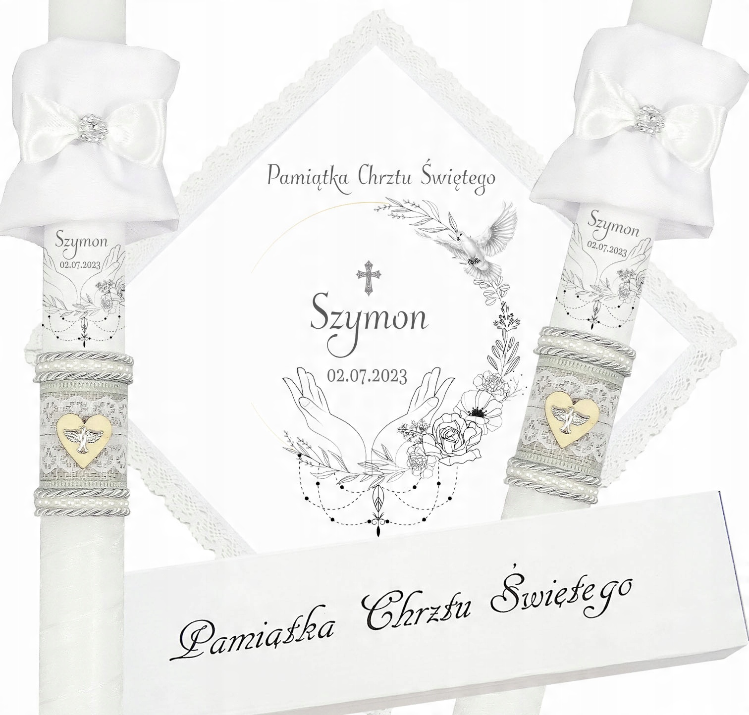 Представляємо надзвичайний набір з хрестильної ризи та свічки, створений з урочистим подія в житті кожної дитини. Халат виготовлений з білосніжного матеріалу та оброблений бавовняним мереживом, що надає йому елегантності та ніжності. Свічка декорована вручну і має принт з ім'ям дитини, що робить її унікальним і унікальним сувеніром. Свічка має срібну нитку, на її поверхні сіра джутова стрічка з мереживом і дерев'яне серце з срібним символом Святого Духа. Інша частина свічки обмотується білою шифоновою стрічкою. Все це упаковано в білу картонну коробку з написом «Сувенір на Святе Хрещення», також в комплект входить тканинна бонусна сумка. Цей унікальний набір із одягу та свічки, безумовно, підкреслить церемонію хрещення та посилить емоції та спогади, пов’язані з цією особливою подією.