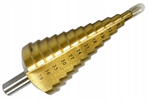 Поступове свердло з високої якості високої сталі. Це дозволяє свердлити ідеально круглі отвори в сталі, латуні, міді, алюмінієві, деревом та пластику.