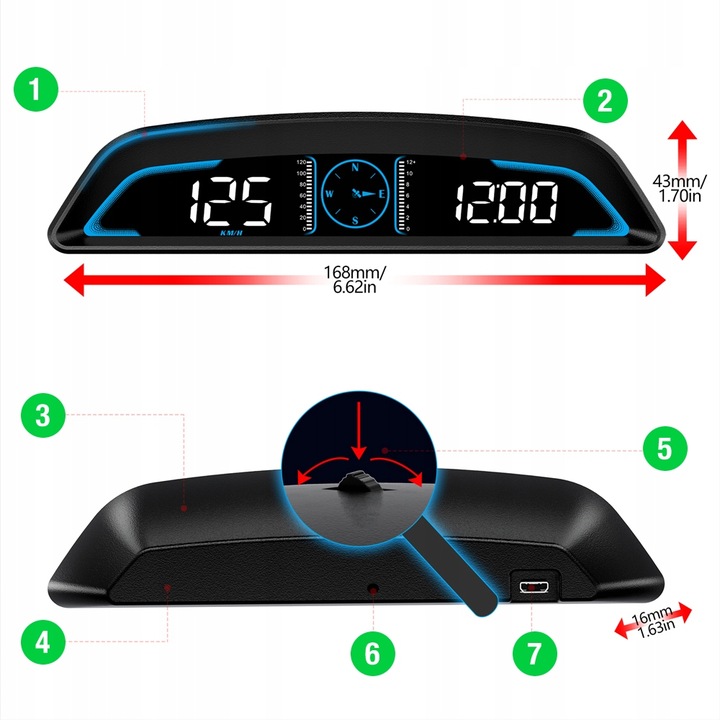 - Дисплей працює з будь-яким автомобілем із модулем GPS – просто живіть дисплей через мікро-USB