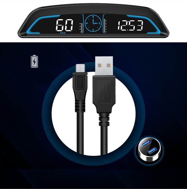 Дисплей підходить для будь-якого автомобіля за живлення від мікро-USB (кабель у комплекті)