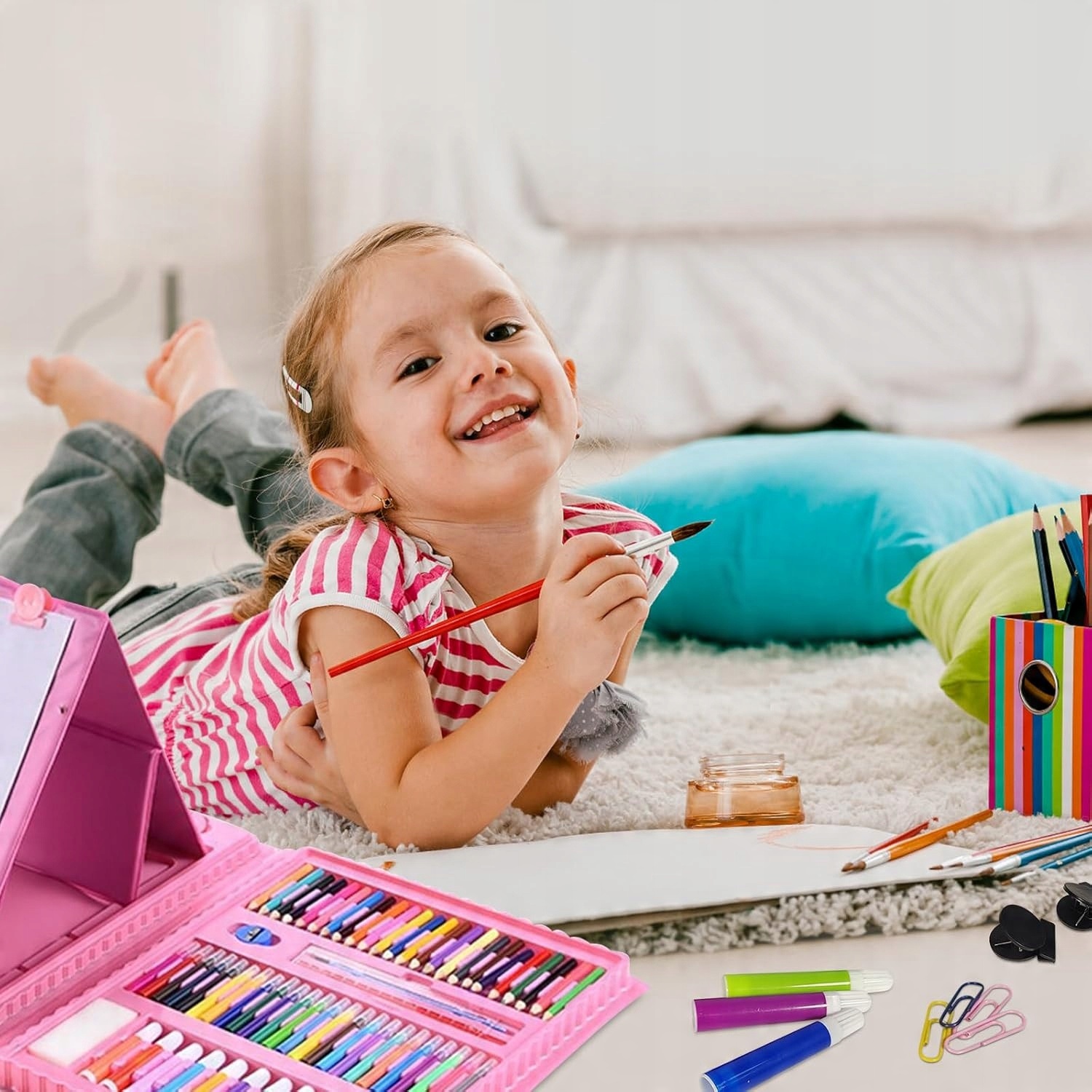 Величезний вибір кольорів необхідні приналежності для малювання, такі як олівці, маркери, олівці або фарби , дозволять дитині створювати красиві зображення. Вони допоможуть пробудити необмежену уяву. Багатий набір аксесуарів забезпечить скупчення дітей чи батьків із комфортом.