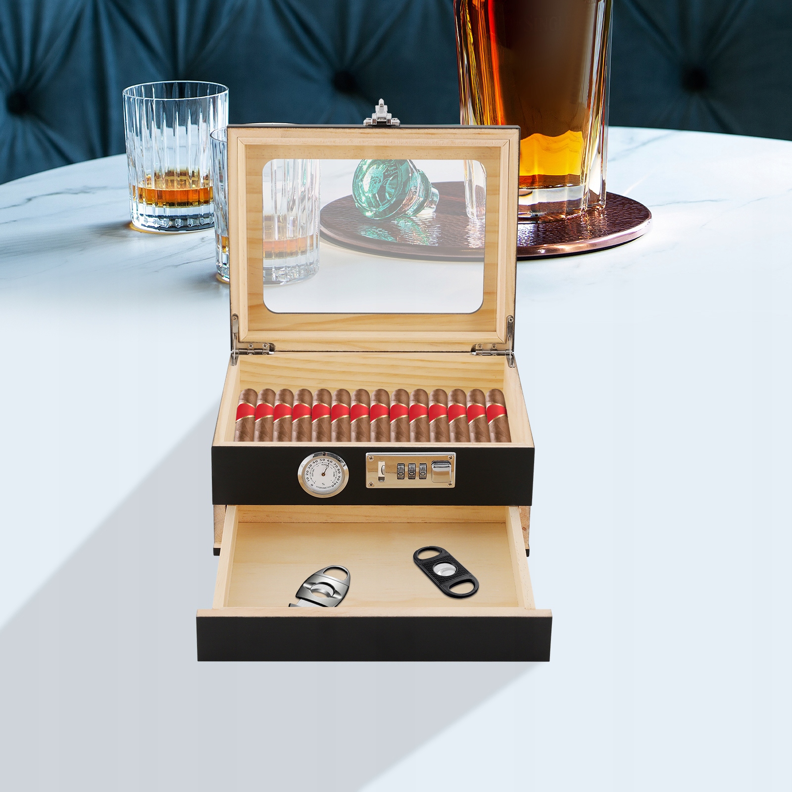 Humidor Box для сигар, на робочому столі коробку з гумідором, коробка з гумідором для сигари з гігрометром