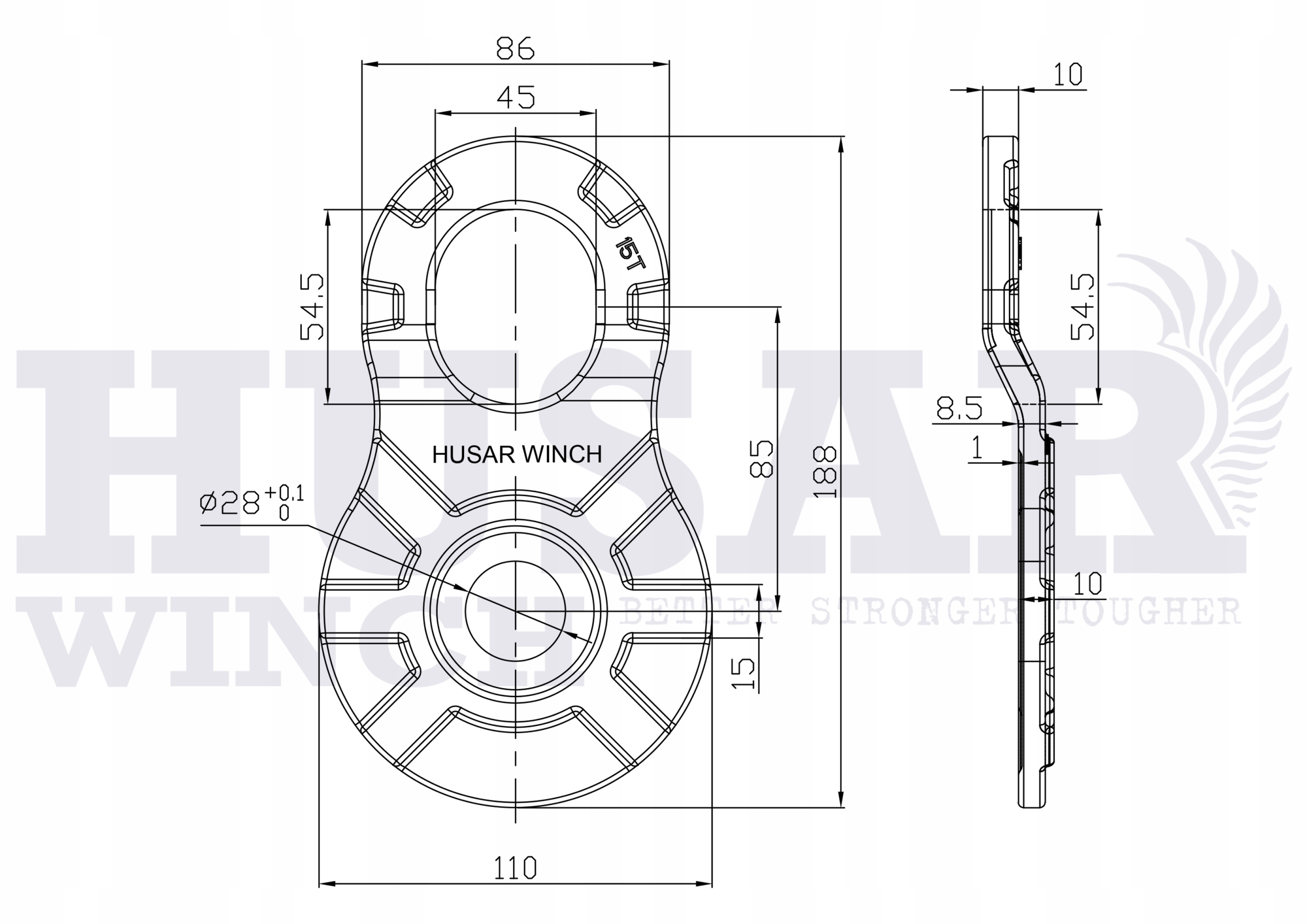 Sobriąb Husar Linch 15 тонн для червоної лебідки 15000 кг 18,8 см Mega Power