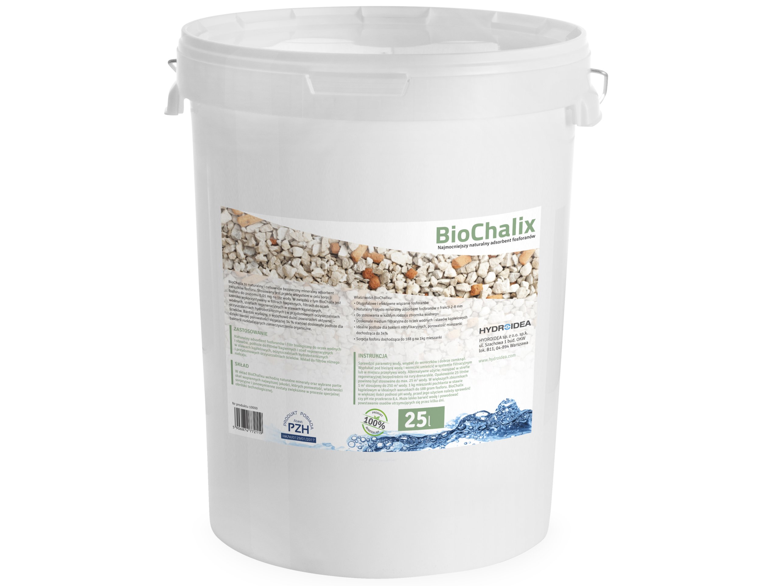 суміші природних мінералів та вибраної партії вапнякових порід з найвищими параметрами якості, що піддаються спеціальному технологічному процесу для збільшення їх пористості, сорбції та іонних властивостей. Основне завдання родовища мінеральних речовин Biochalix з фракцією від 2 до 8 мм полягає у зв'язуванні, поглинанні та видалення фосфору з водойм, до рівня нижче 0,01 мг/л. Biochalix збагачує воду кальцієм і завдяки високій пористійності він є чудовим середовищем існування для бактерій, які розбивають органічне забруднення. В даний час це найсильніший природний фосфат адсорбент. Біохалікс, залежно від умов, може поглинати від 85 до 188 грам фосфору на 1 кг суміші. Це найсильніший адсорбер фосфату, доступний на ринку.