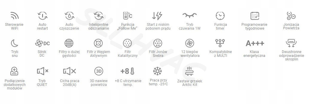 Найвища серія кондиціонерів - це комбінація сучасного вигляду з найсучаснішими функціями кондиціонера. Іонізація повітря, набір обігрівачів і плавна робота навіть при -25 ° C, створіть пристрій з найвищою якістю роботи в будь -яких умовах із задньою частиною останніх рішень на ринку кондиціонування.