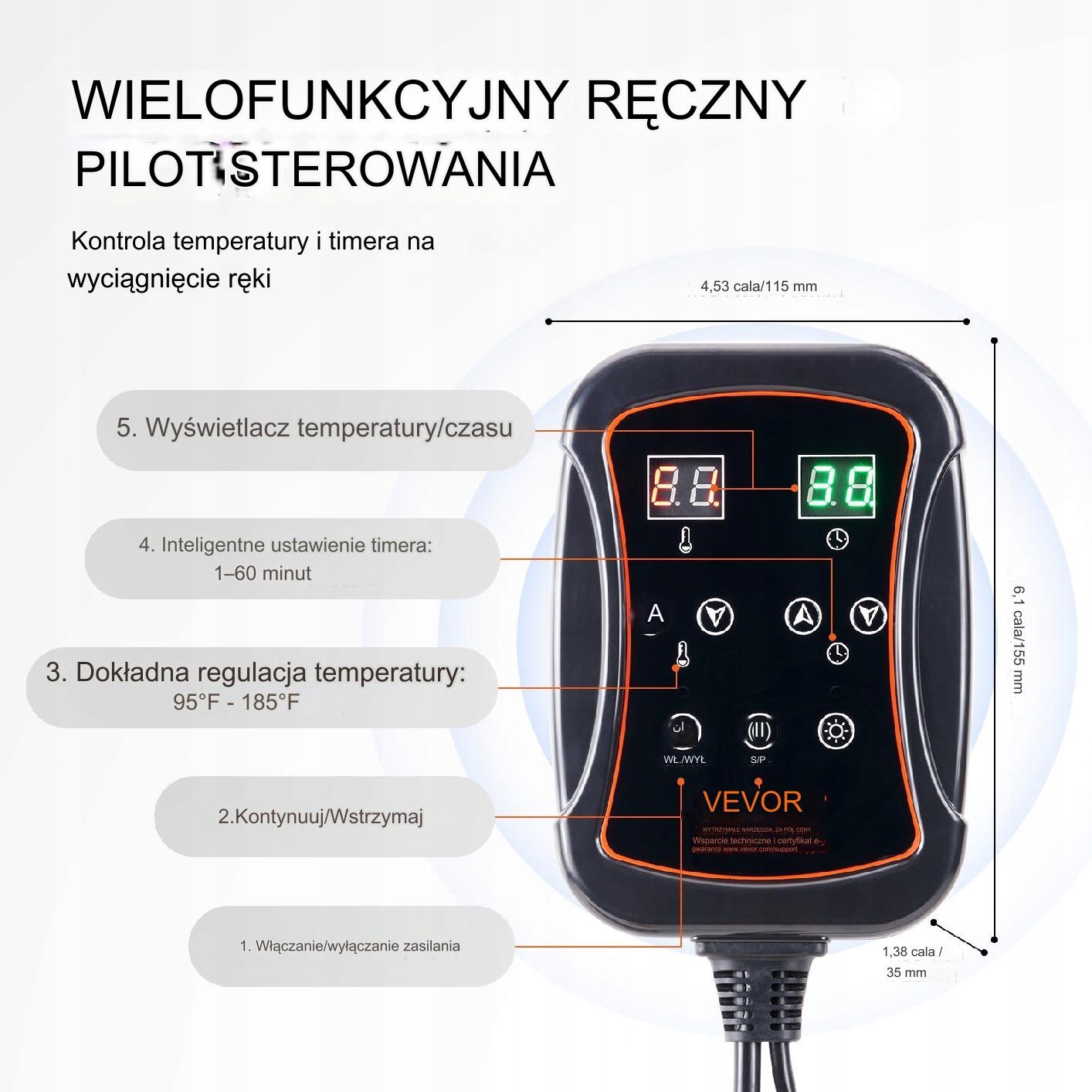 Багатофункціональний пульт дистанційного керування дозволяє точне регулювання температури в діапазоні від 1 до 6 градусів та програмуванню таймера від 1 до 60 хвилин. Завдяки цим функціям, користувач може адаптувати налаштування до індивідуальних уподобань, максимізуючи задоволення та ефективність сеансів у сауні.