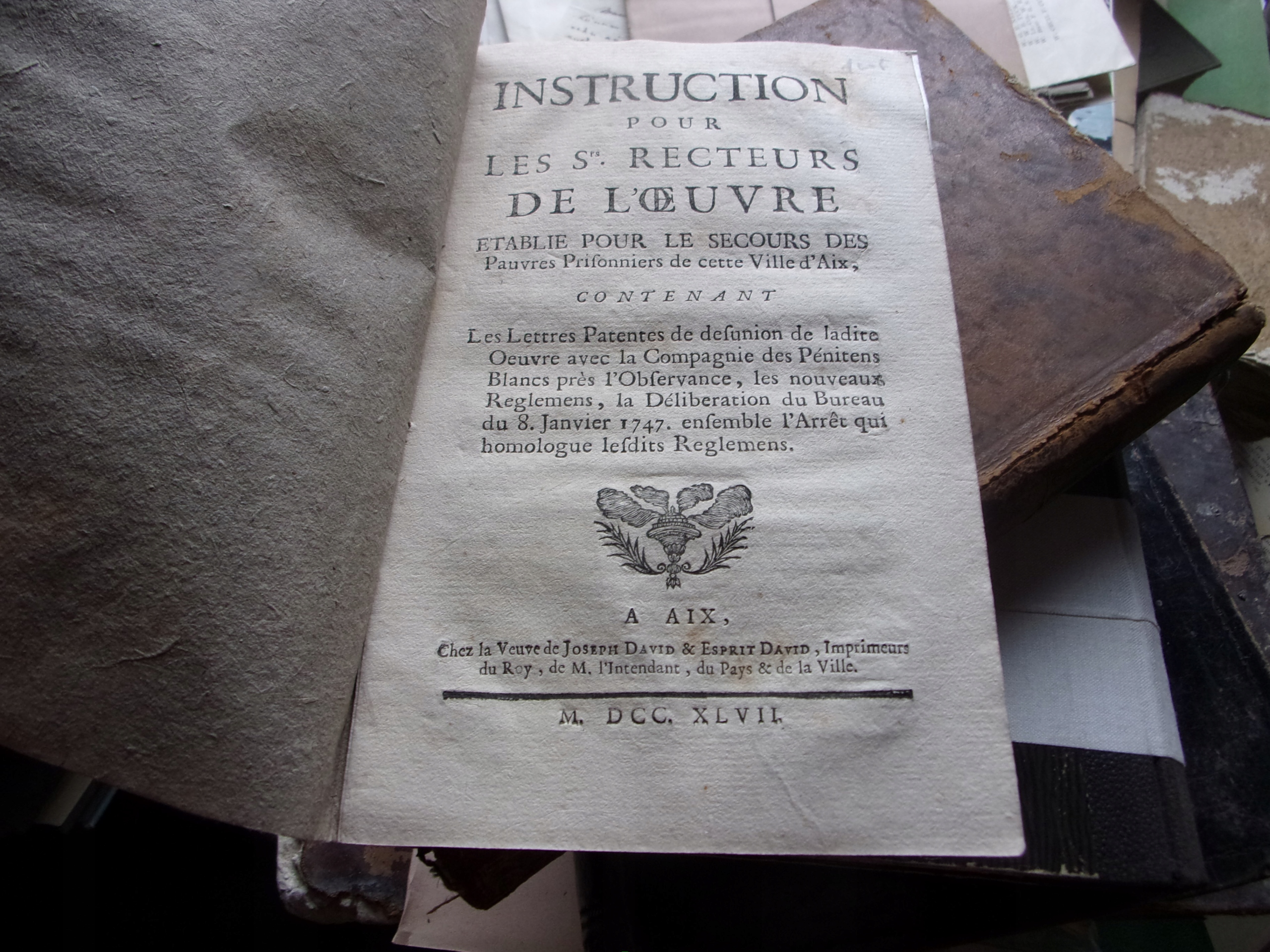 INSTRUKCJA DLA REKTORÓW INSTYTUCJI POMOCY WIĘŹNIOM MIASTA AIX unikat 1747