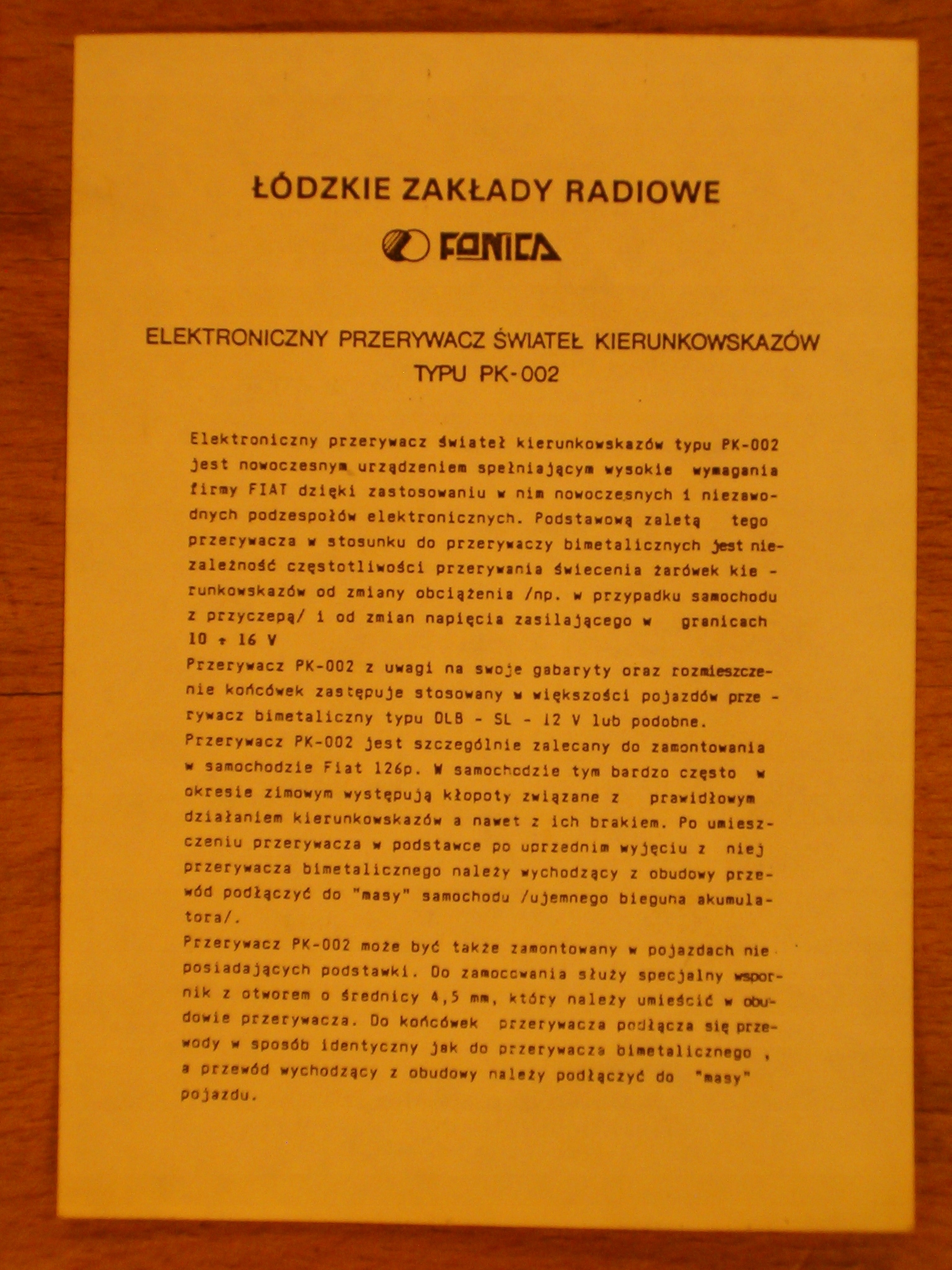 Instrukcja obsługi przerywacz kierunkowskazów PK002