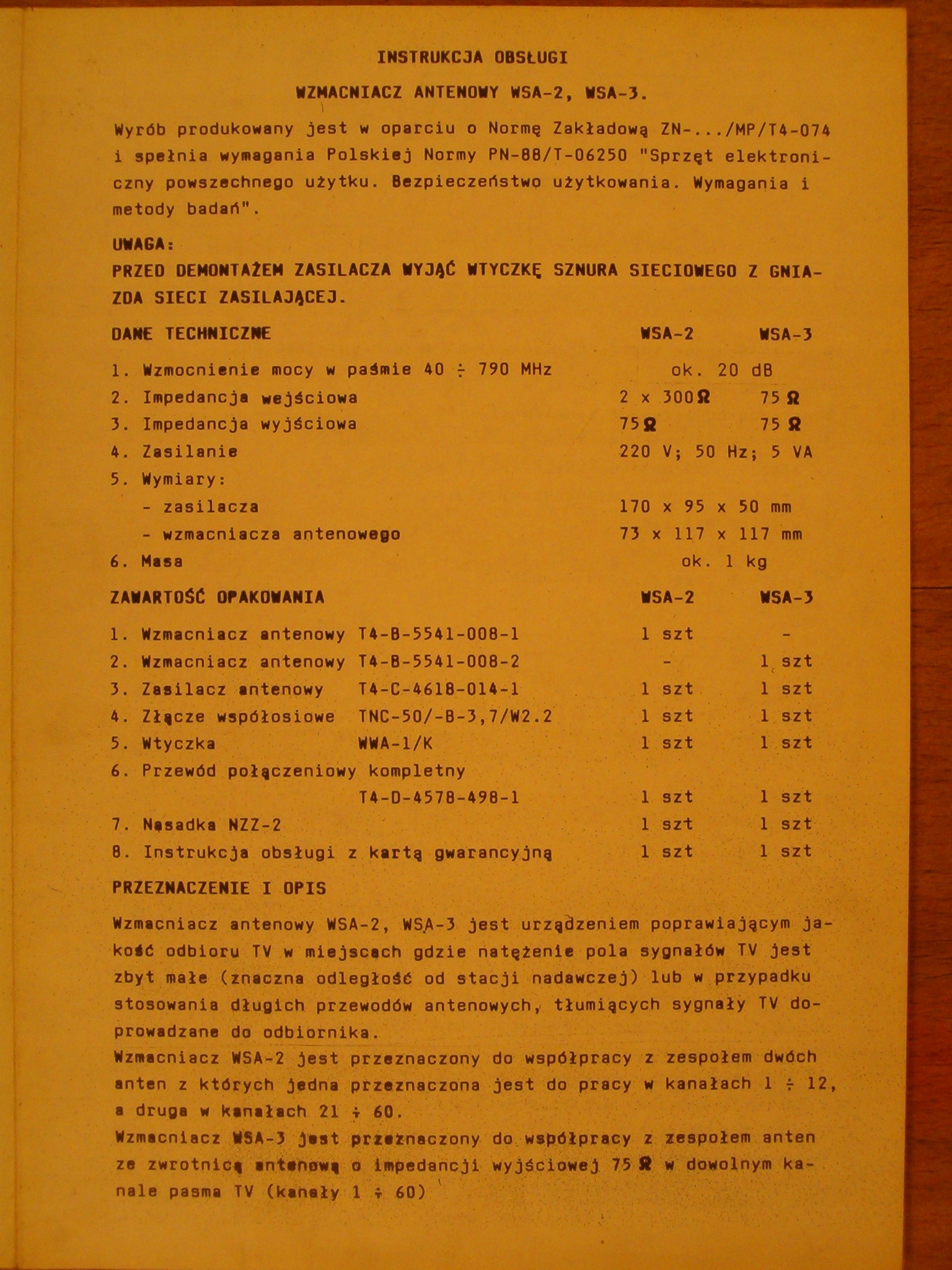 Instrukcja obsługi wzmacniacz antenowy WSA Fonica