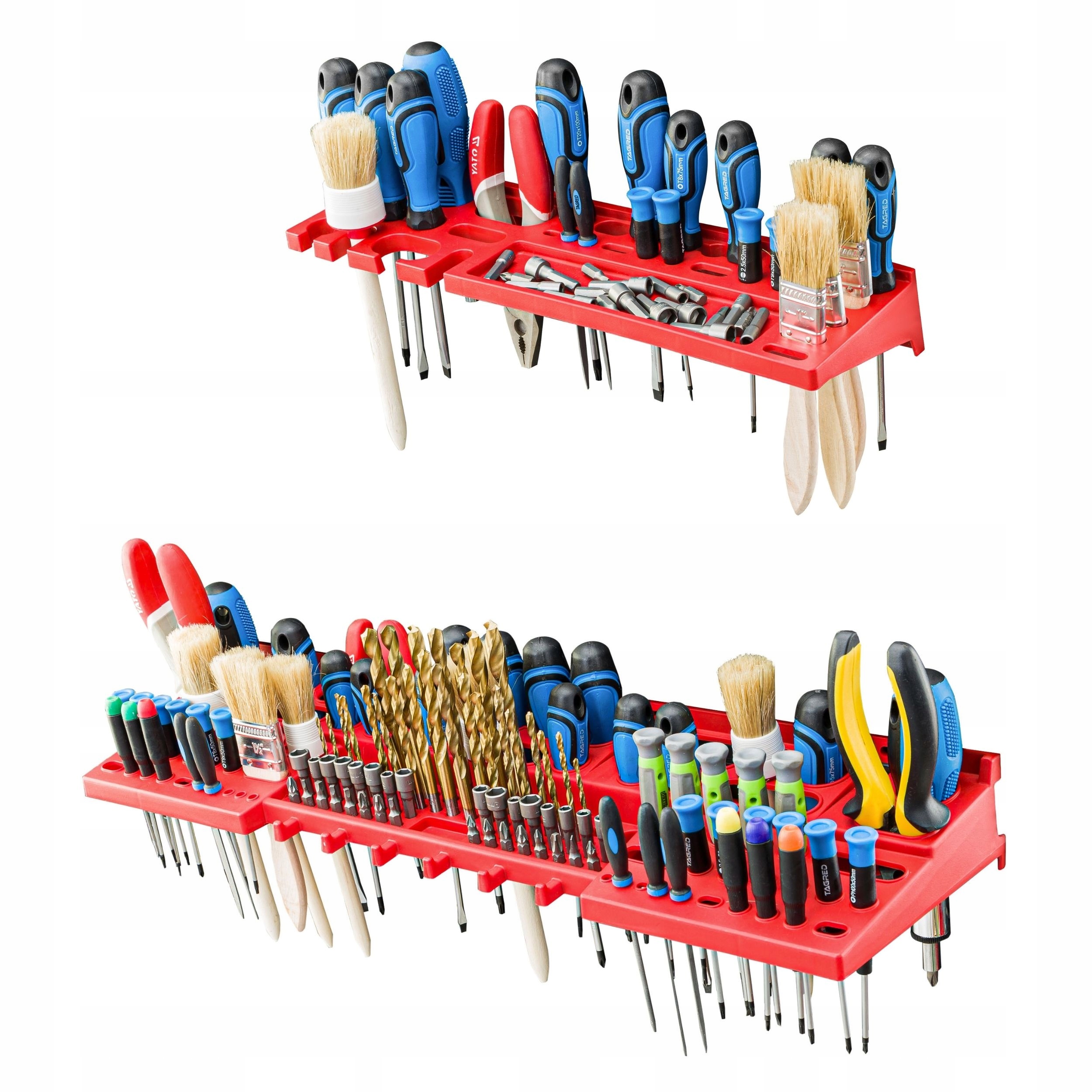 Одними з найважливіших елементів набору є тримачі інструментів і полиці, які кріпляться до дошки горизонтально, дозволяють зрозуміло розташувати всі необхідні інструменти. Невикористаний простір над стільницею є ідеальним місцем для інструментальної панелі, що забезпечує доступ під рукою. У представлений набір входять тримачі для інструментів і полиці згідно специфікації: