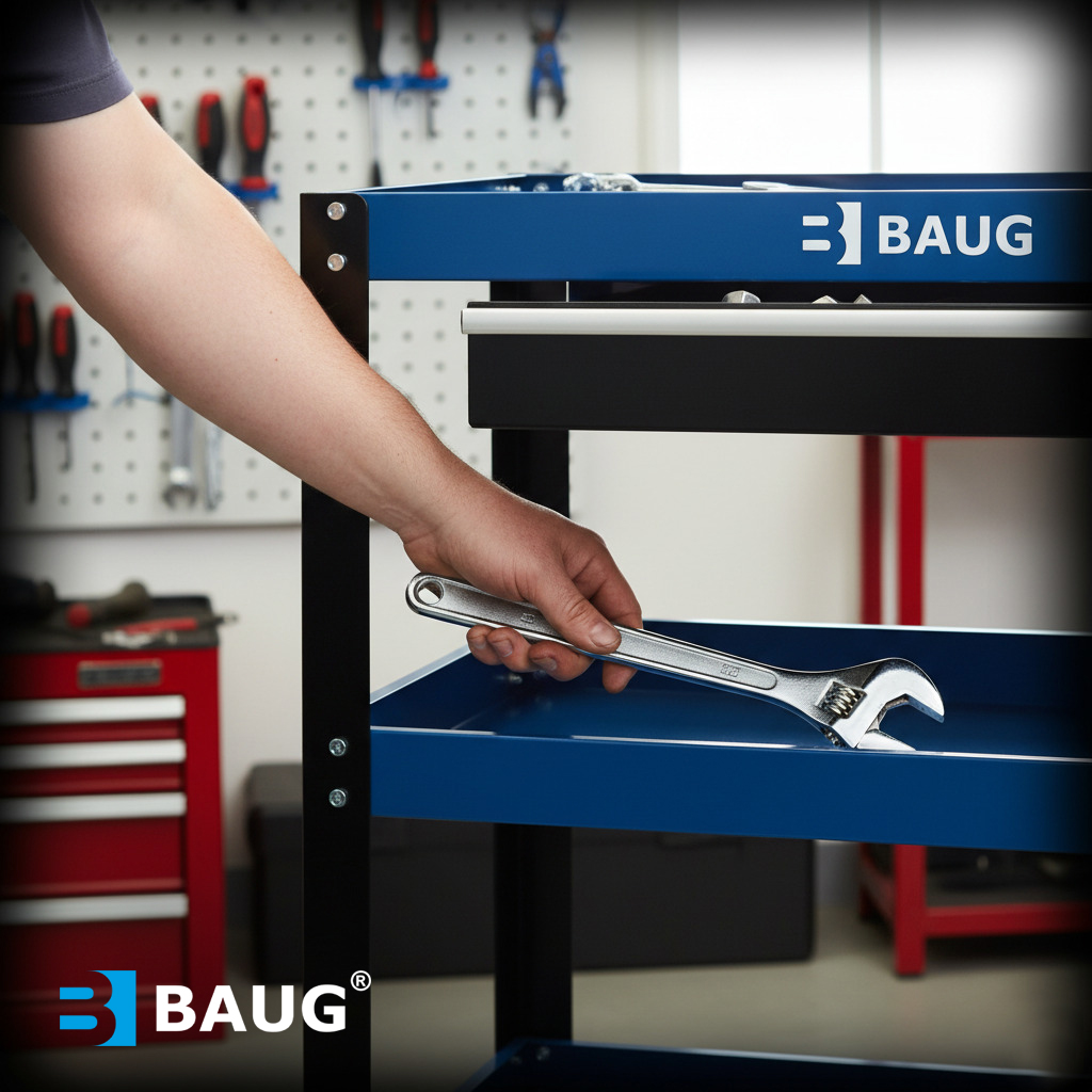професійним та універсальним візком інструментів із baug - це практичне рішення для семінарів, автомобільних послуг, фабрик ремонту, а також для самостійної роботи в гаражі.