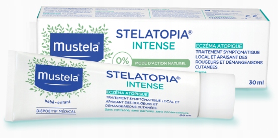 Крем Stelatopia Intense допомагає заспокоїти подразнення та пошкодження шкіри, обмежуючи запальну реакцію та підтримуючи регенерацію шкіри. Містить ектоїн, природну молекулу, що захищає клітини, має властивості зменшувати запалення. Цей компонент захищає ліпідні мембрани, зменшує запальні процеси, викликані зовнішніми факторами, і покращує загальний стан шкіри. Крем ефективний і безпечний як монотерапія при лікуванні легких і помірних симптомів атопічного дерматиту. Також його можна використовувати для симптоматичного лікування при гострому захворюванні. Нежирна консистенція, швидко вбирається. Не містить стероїдів.