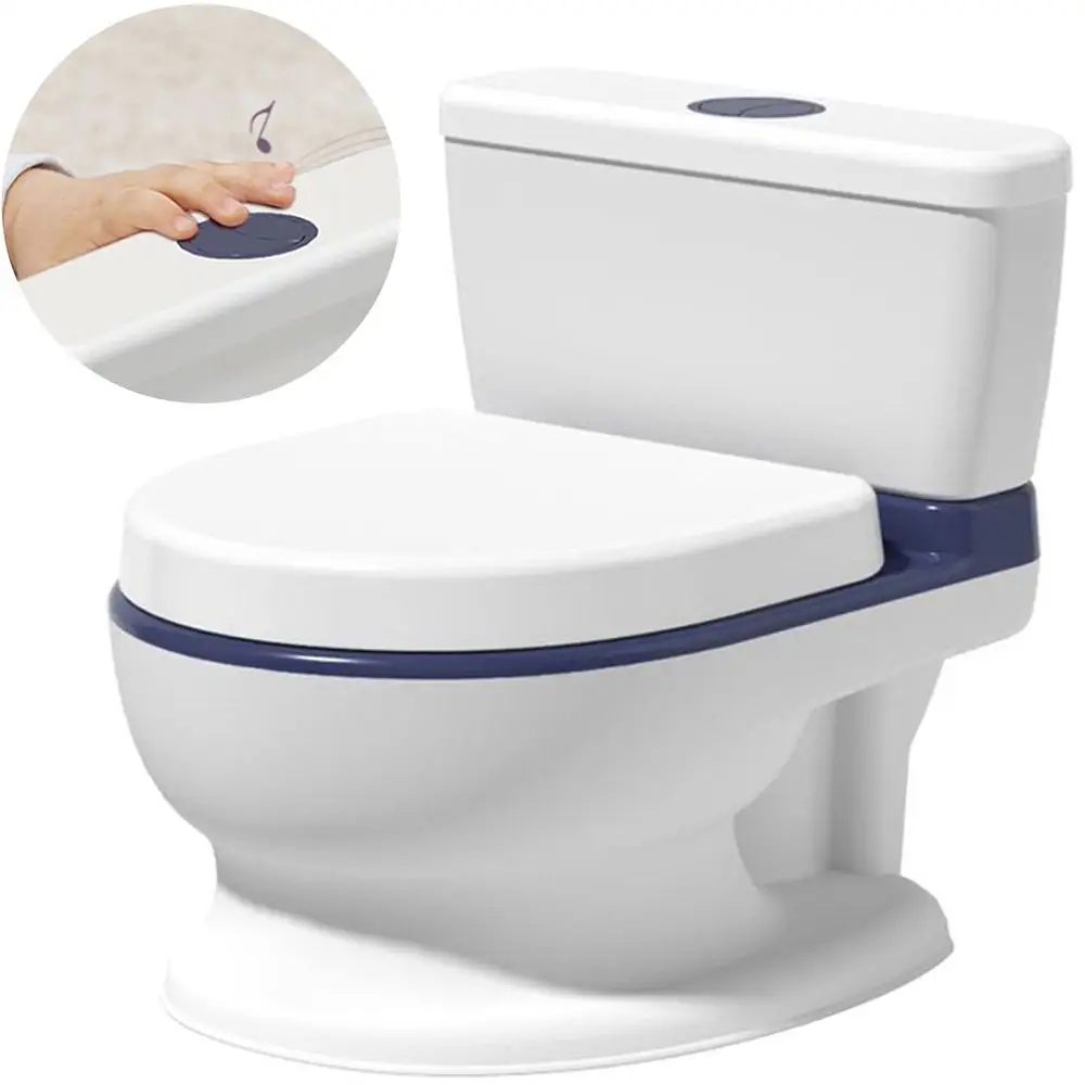 У горщика є мелодії, які дитина може активувати після натискання кнопки, що імітує змивання.