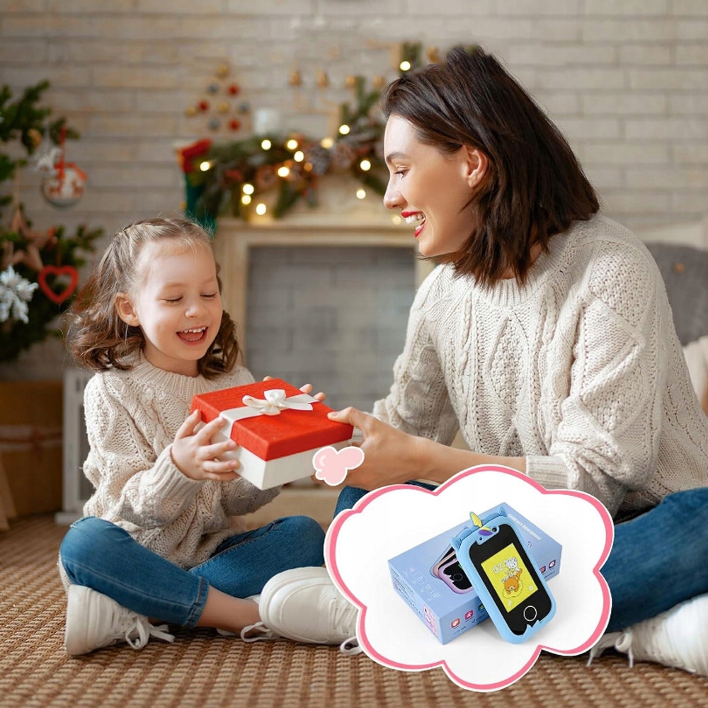 Іграшка для дітей оснащена 2, 2, оснащена 2, 4-дюймовий сенсорний екран IPS і має багато функцій, як справжній телефон. Діти можуть фотографувати та записувати фільми, слухати музику та казки та грати в ігри. Іграшка також може використовуватися як ліхтарик, будильник, калькулятор та календар. Цей телефон -не є нетоксичним, BPA, вільним від випромінювання та безпечної іграшки для дітей віком від 3 до 10, які завжди хочуть користуватися телефоном.