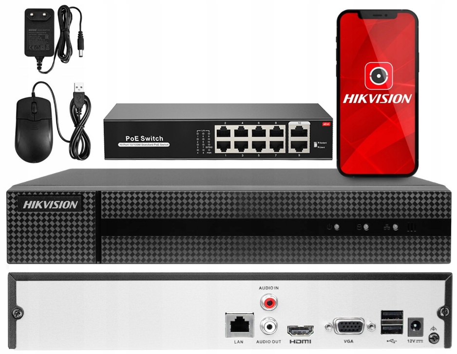 IP-рекордер 8-канальний Hikvision + Switch 8xpoe
