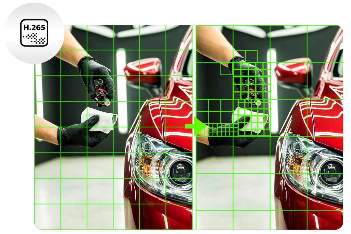 - ефективне стиснення H.265+/H.265 покращує продуктивність запису