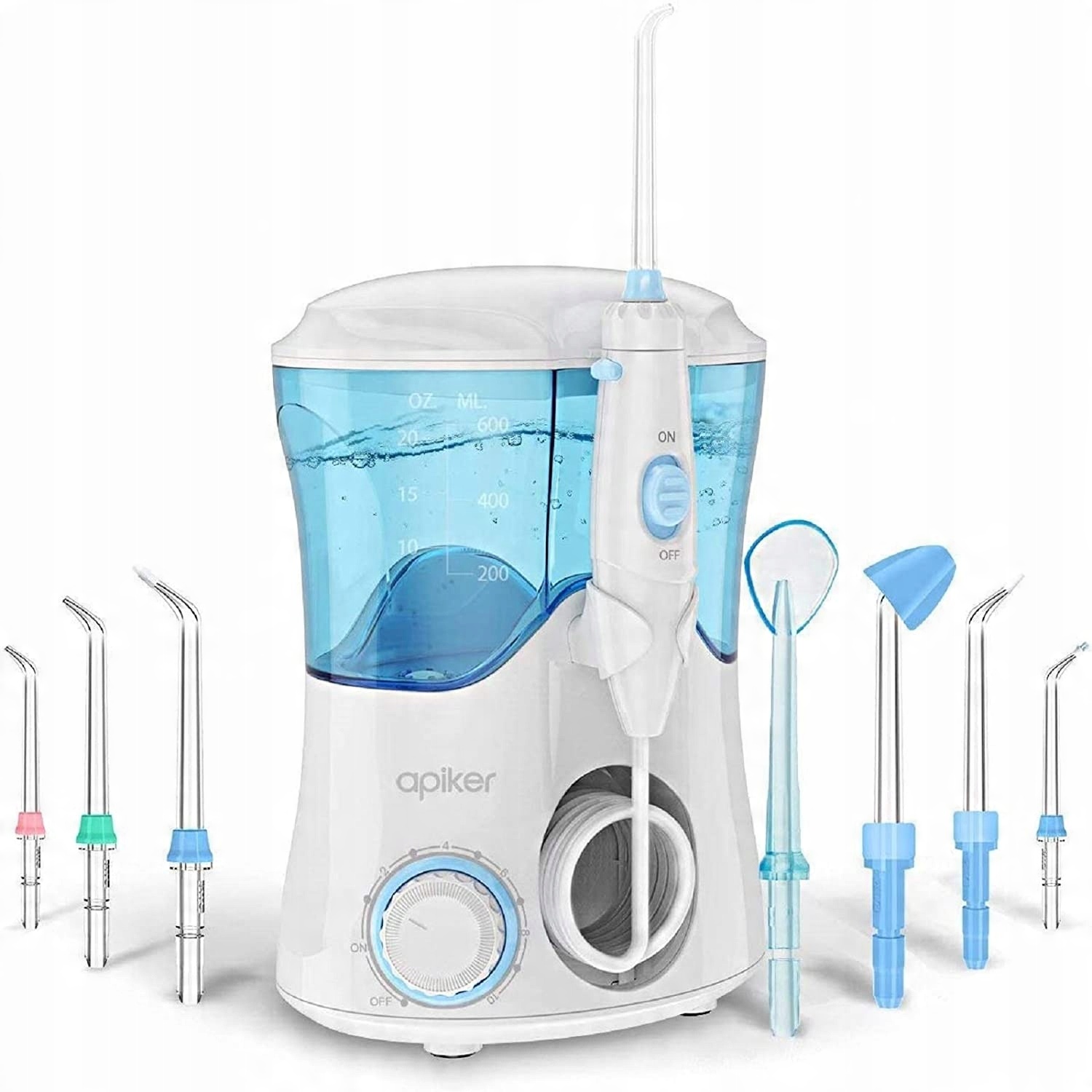 - 8 багатофункціональних наконечників: Різні насадки відповідають різним потребам (3 x класичні наконечники, 1 x пародонтальний наконечник, 1 x ортодонтичний наконечник, 1 x наконечник для зубного нальоту, 1 x насадка для чищення язика, 1 x насадки для носа). мл збільшує час віджимання. Наповніть теплою водою для чутливих зубів або додайте рідину для полоскання рота для кращих результатів.