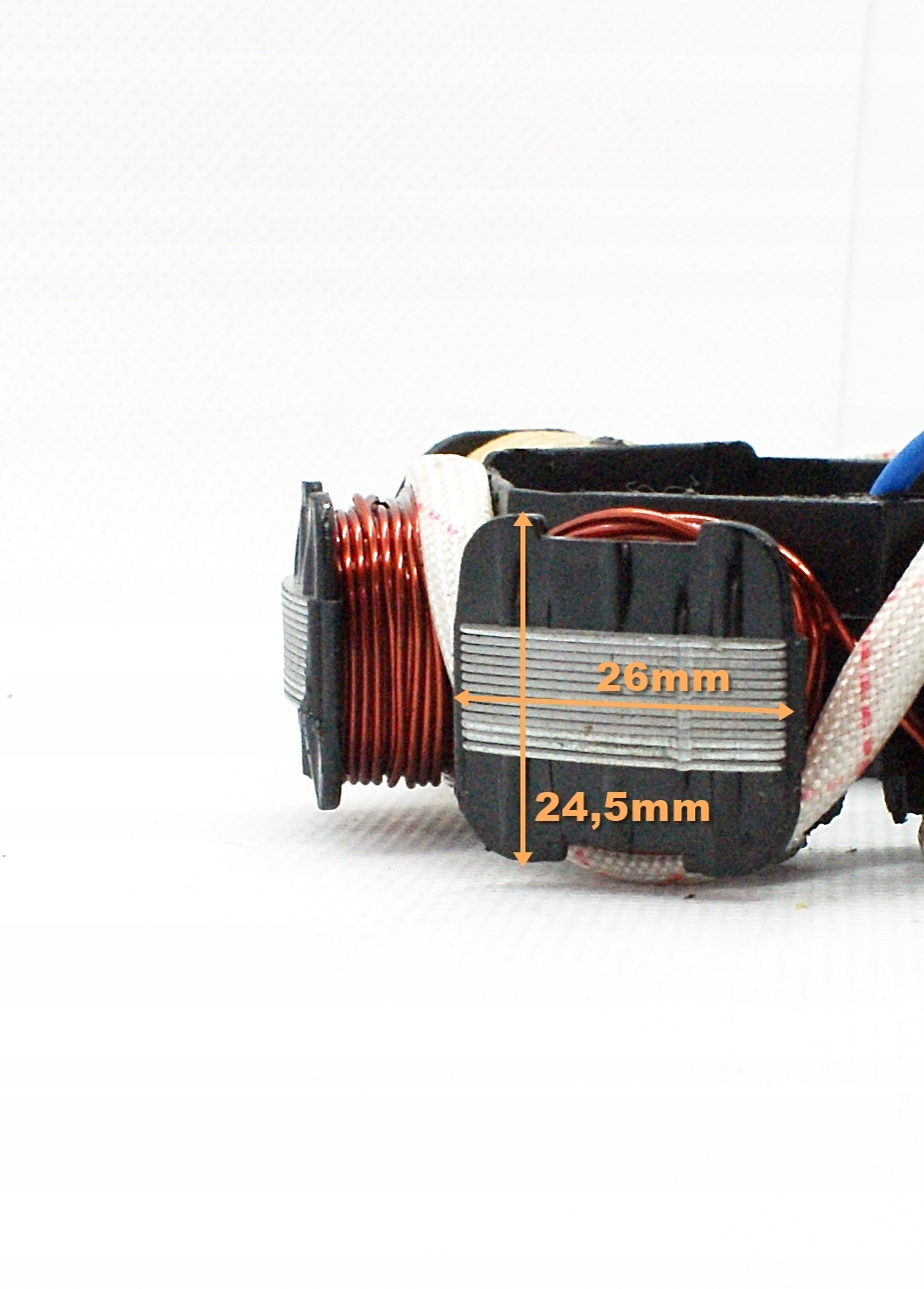 Статор має сталеву основу. Він має 6 котушок і з’єднаний за допомогою шести проводів, які закінчуються кубом і циліндричним з’єднувачем