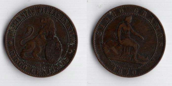 ІСПАНІЯ 1870 5 ЦЕНТІМОС