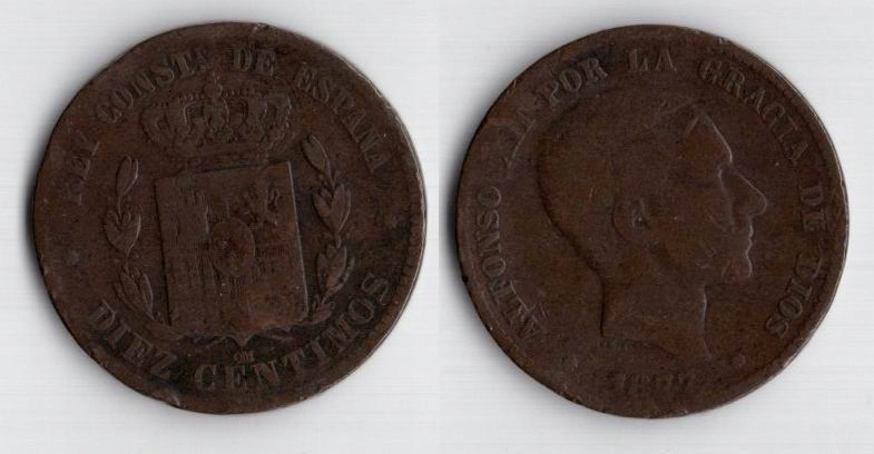 ІСПАНІЯ 1877 10 ЦЕНТІМОС