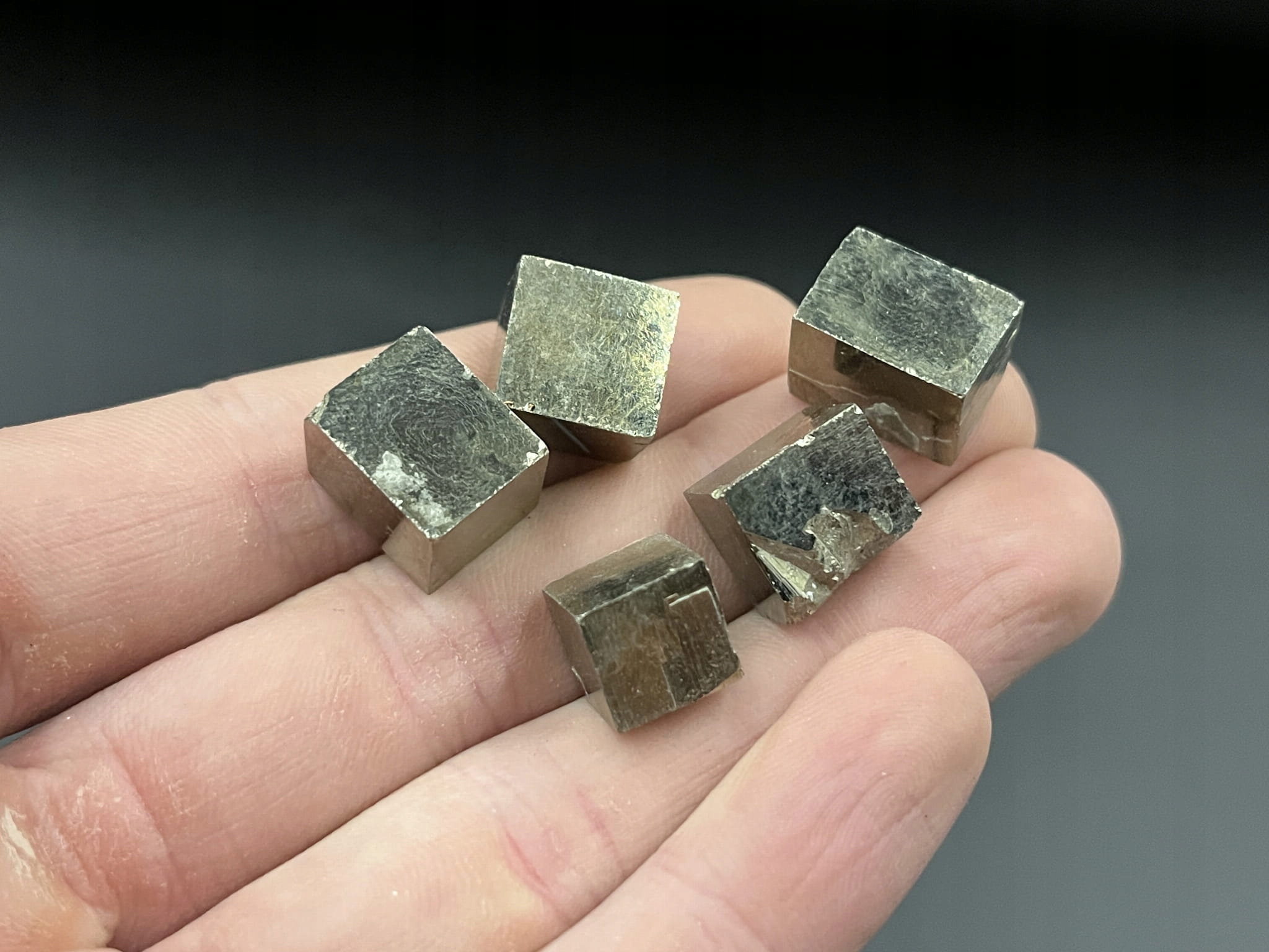 кубічний куб піриту із золотим металевим кольором, який також називають багатьма "золотими дурнями". Природний мінерал, був знайдений в Іспанії - на шахті Вікторія в Наваджун. Розміри щиколоток у діапазоні 10 мм - 15 мм. Вага: 5G-8G. Мінерал вибирається випадковим чином. Ціна на одну частину.