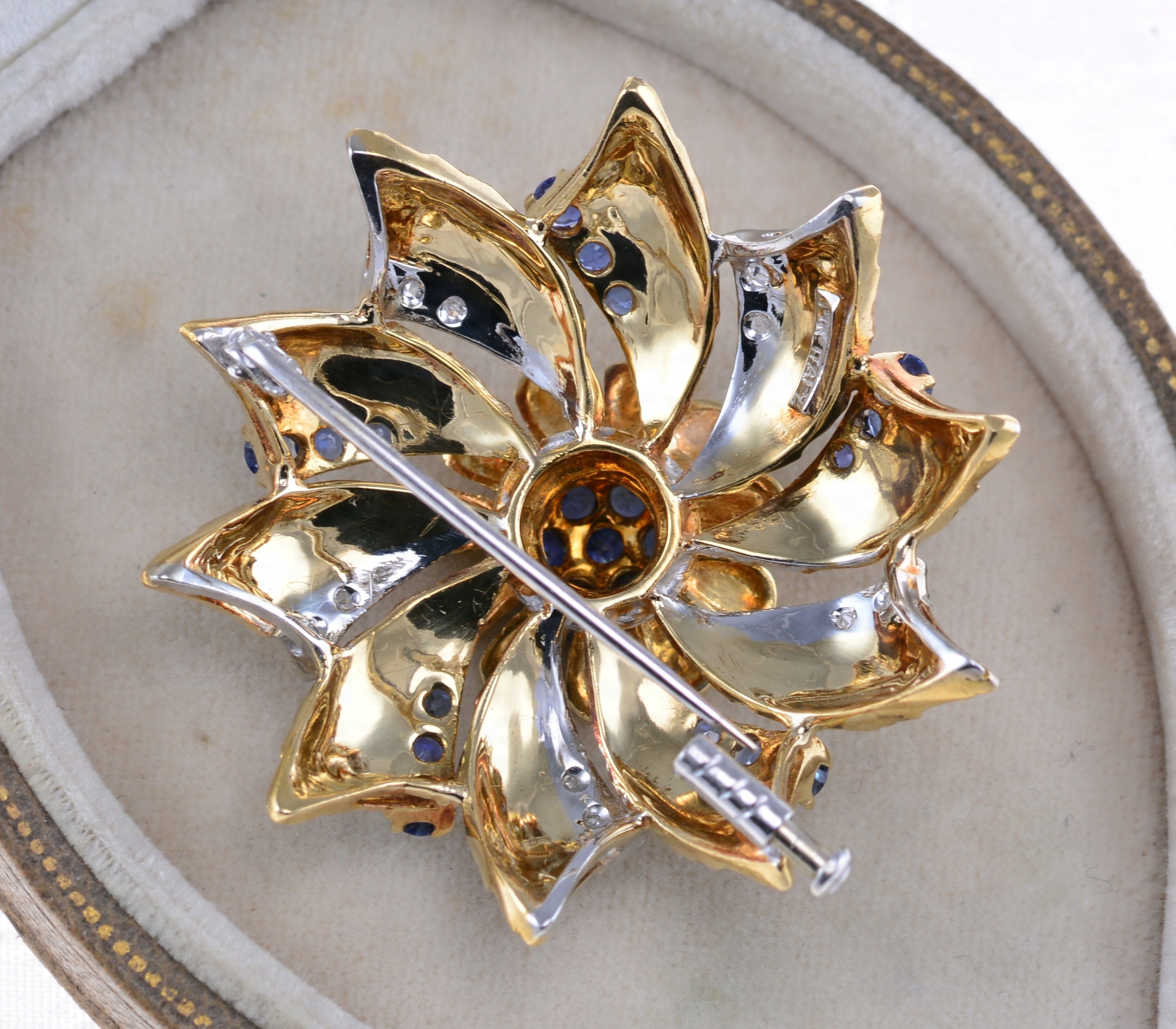 ІТАЛІЙСЬКА БРОШКА З ЗОЛОТА 18К З САПФІРАМИ ТА ДІАМАНТАМИ
