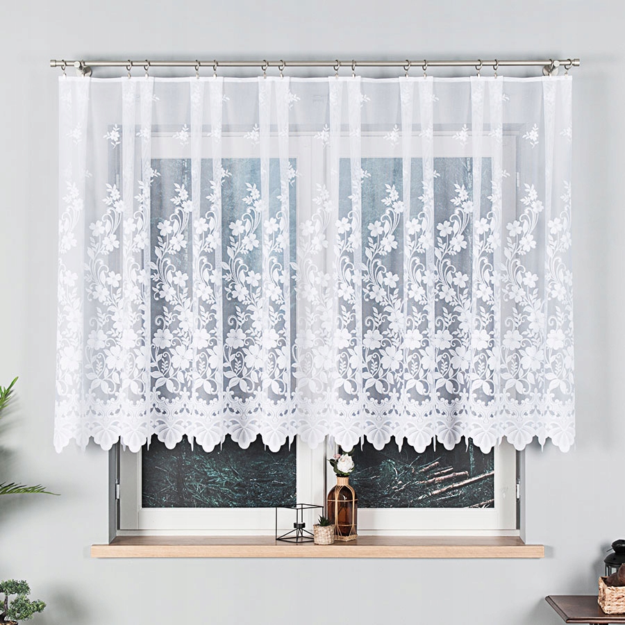 Жакардова штора, біла, КВІТКОВИЙ ВИЗІРУНОК, висота 130 см, Бонус КРОМ