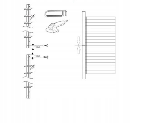 Щоб з'єднати системи вертикально (наприклад, коли ми хочемо отримати висоту понад 109 см), просто вкоротіть верхню систему на 11 мм у нижній частині,