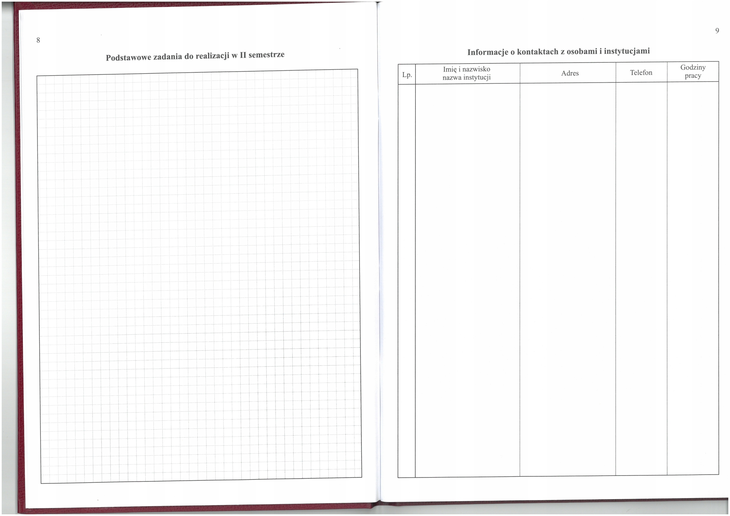 - Tasks to be carried out in the first and second semester