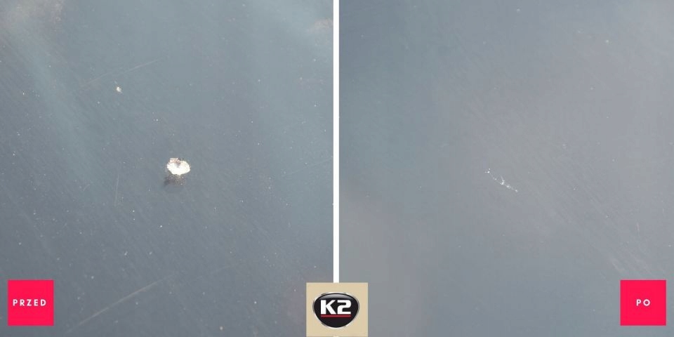 Використання масок набору K2 GLASS DOCTOR сколи на склі, завдяки чому воно стає непомітним і не заважає під час водіння. Це також запобігає збільшенню сколу.