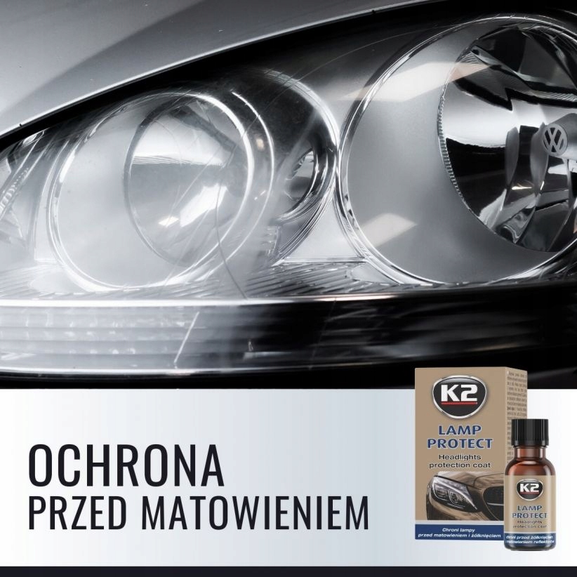 K2 LAMP PROTECT - довговічне захисне покриття, призначене для фар із пластику та скла. Запобігає пожовтінню та тьмянінню ламп. Захищає від шкідливого впливу УФ-променів. Зберігає поверхню лампи чистою, відштовхуючи воду та полегшуючи видалення бруду. Захищає фари від легких подряпин.