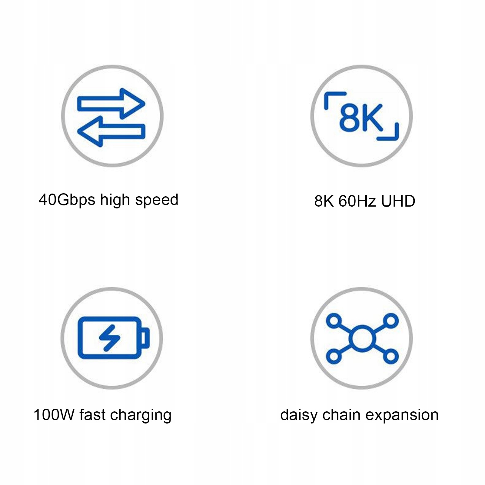 2. Швидкість передачі до 40 Гбіт/с: цей кабель Type-C типу C підтримує інтерфейс Thunderbolt 4, тому загальна швидкість передачі даних досягає 40 Гбіт/с. Підтримує швидку зарядку 100 Вт PD і передачу 8K 60 Гц.