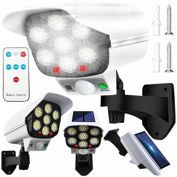 Високоякісна фіктивна камера спостереження. Це створює враження реалістичної фотокамери, що працює на сонячних батареях. Манекен також має функцію SMD LED LAMP потужністю 77 LED SMD, яка має вбудований датчик руху та сутінків