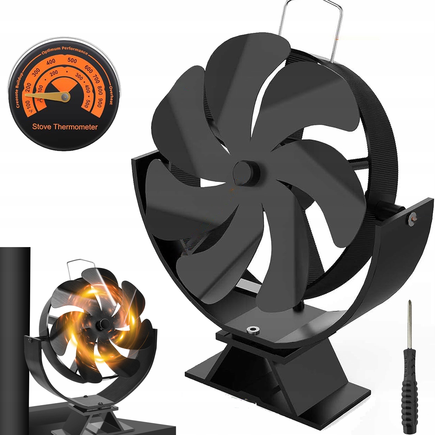 - Камінний вентилятор для піч дров'яний вентилятор має 7 лопатей, які рівномірно розподіляють гаряче повітря по кімнаті, забезпечуючи тепло.