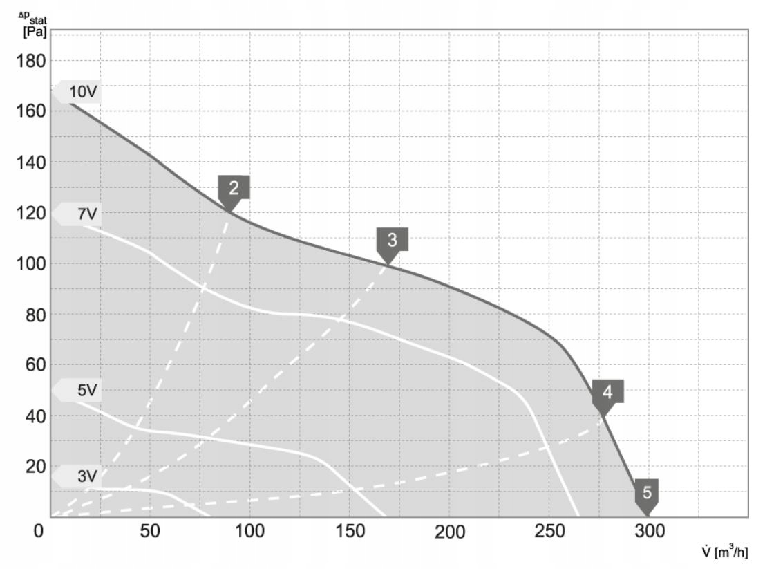 Вентилятор оснащений безщітковим електродвигуном з електронною комутацією, вбудованим тепловим захистом і ротором із спеціально профільованими лопатями. Двигун призначений для плавного регулювання частоти обертання в повному діапазоні при збереженні високого ККД.