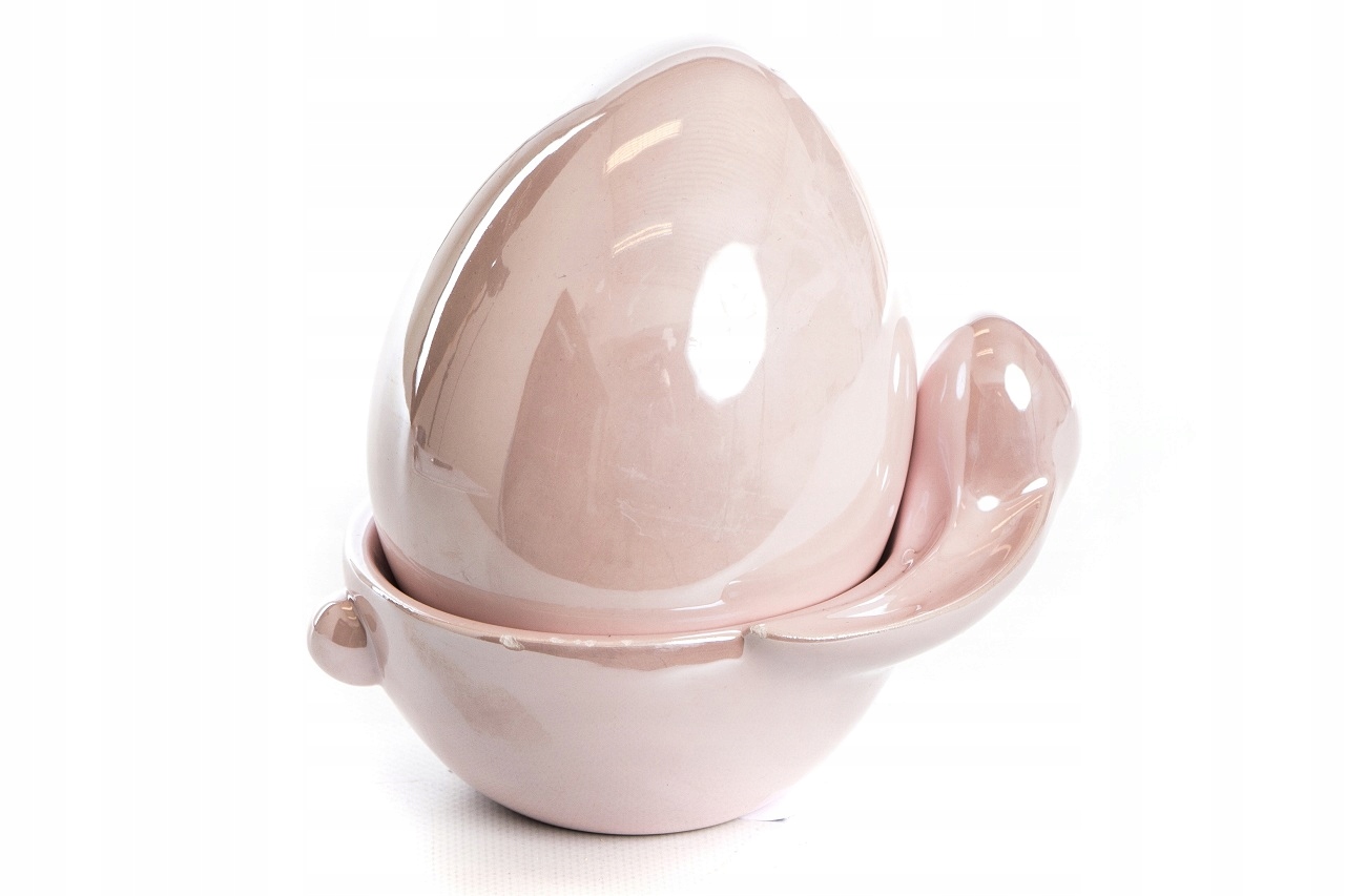Керамічна фігурка яйця на підставці рожевого кольору. Глянцеве покриття. Чудовий декоративний елемент, який красиво виглядає в домашніх або терасових композиціях. Це змінить характер будь-якої весняної композиції.