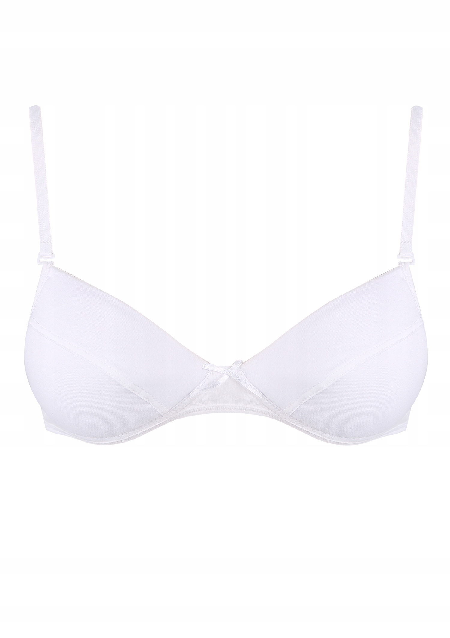 Білий, один забарвлений бюстгальтер для підлітка. Бюстгальтер. Увагу привертає чарівна деталь у вигляді крихітного лука. Бюстгальтер має жорсткі чашки та регульовані, знімні ремінці. Чаші зміцнюються завдяки товстій, м'якій губці та спеціальному зшиванню на місці підвіту. Носіння комфорту - немає металевого підвіту. Відмінний розріз для підлітків у віці 11-15 років. Зупинка: 95% бавовна, 5% еластан