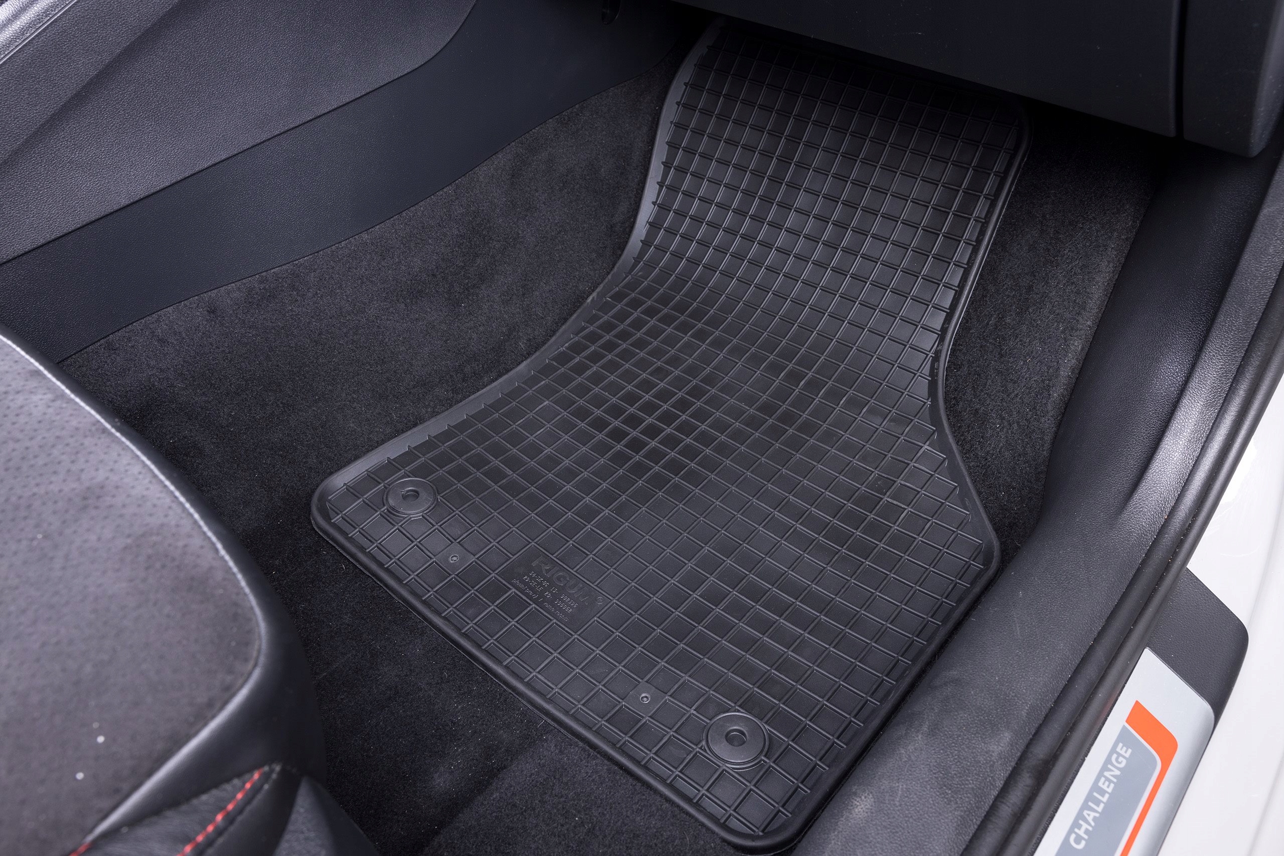 Пропоновані килимки точно розроблені у формі пластини підлоги, враховуючи не лише бренд/модель автомобіля, але й рік і, у виправданих випадках, версію кузова. Килимки виготовлені з найвищої якості , міцної та посиленої гумової суміші, яка не містить шкідливих речовин, що забезпечує безпечне використання. естетичний захисний комір (край) навколо килимів ефективно зупиняє воду та бруд, захищаючи оригінальну оббивку автомобіля від бруду. У нижніх килимах є невеликі шипи, які захищають їх від ковзання. Килим водія додатково посилений у найбільш чутливому місці (точка контакту на підборах з поверхнею килима) для захисту килима від стирання. Для поліпшення килимків їх модифікували встановлені роз'єми, створені та встановлені max-dywanik® .