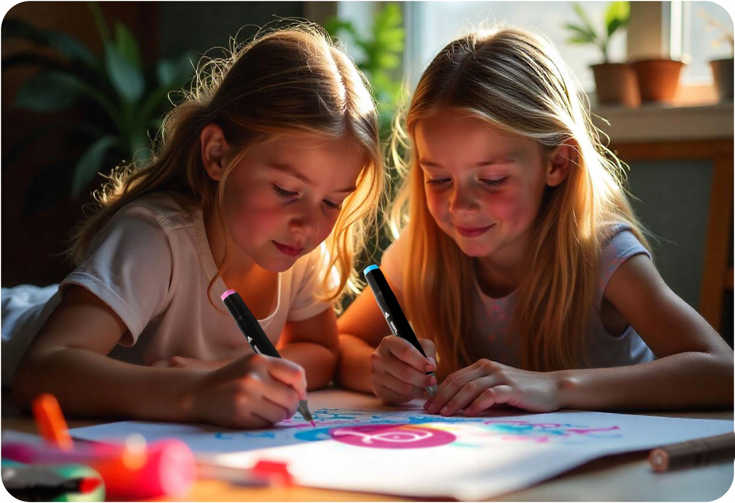Набір маркерів оснащено зручним, зручним чохлом із ручкою, який не тільки полегшує зберігання та транспортування, але також надихає на творчість.