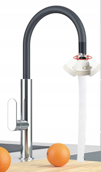 Економить воду, зберігаючи повний комфорт використання. Аератор повністю обертається на 360 градусів. Має зручну кнопку для зміни режиму роботи (3 сили струменя води).