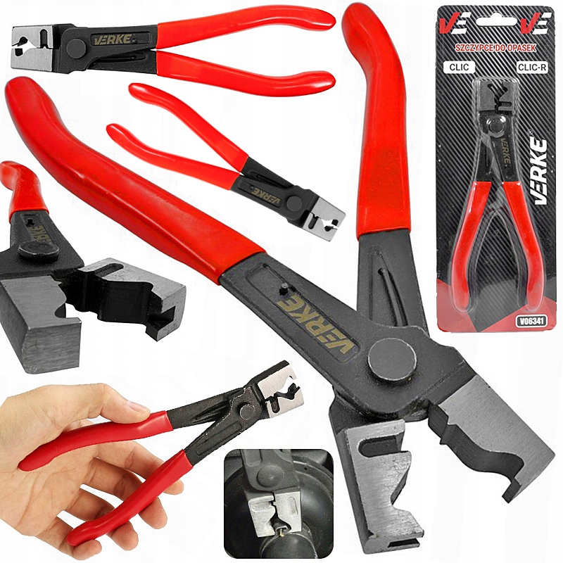 Verke плоскогубці були розроблені спеціально для багаторазових діапазонів CLIC та CLIC-R , що гарантує точне затискання та послаблення смуг без ризику їх пошкодження. Конструкція дозволяє швидко складати та розбиратись у різних установах, у тому числі в системах охолодження, палива та гідравлічних системах.