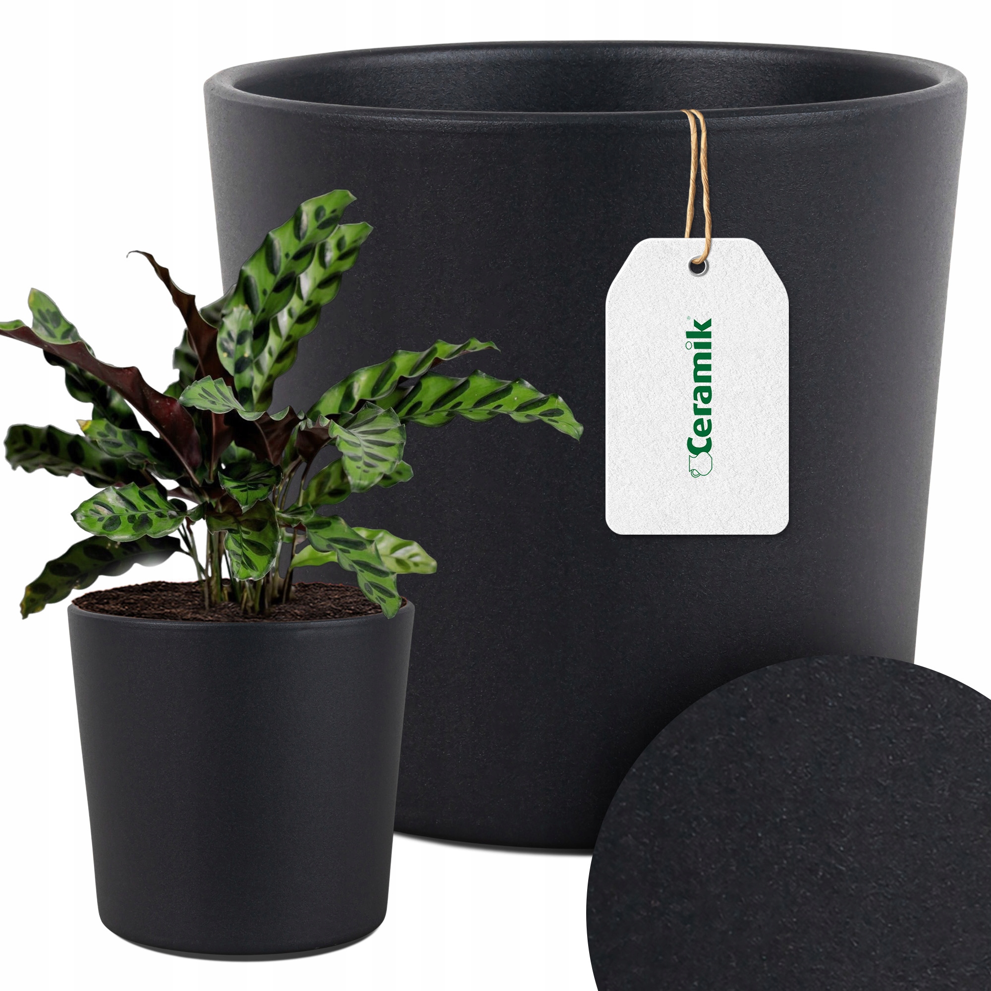 - Керамічна обкладинка кераміка - це ідеальне доповнення до кожного дизайну інтер'єру . його темний колір і матовий Структура робить його гармонійно вміст як у сучасних, так і в більш традиційних просторах. Характер, і завдяки розмірів 23 x 23 см і діаметром 23 см він ідеально підходить для посадки більших рослин, таких як монстри, пальми або антурію.