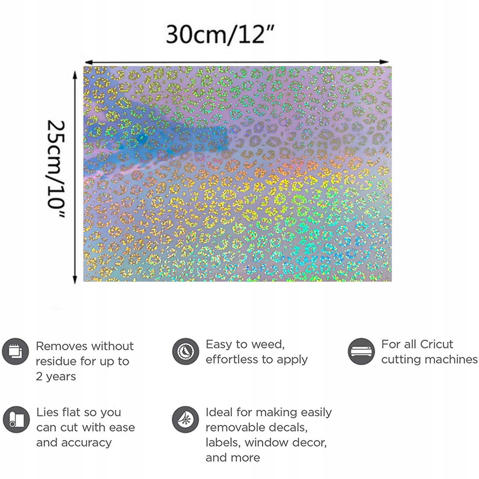 Клейкий вініл 12 x 10 дюймів, голографічний райдужний леопард