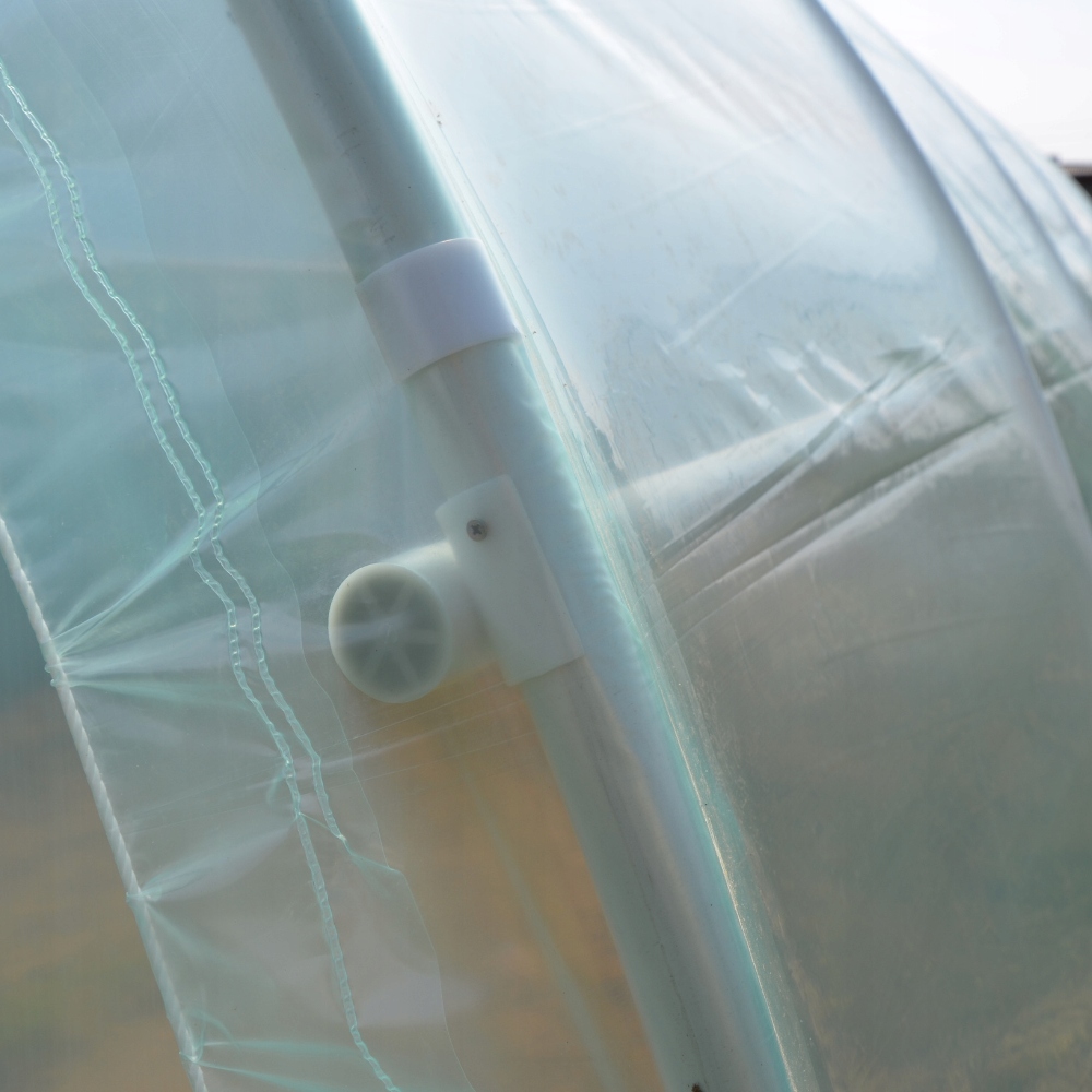 Затискач дозволяє неінвазивно монтувати садову плівку на трубу із зовнішнім діаметром 50-52 мм. Виготовлений із високоякісного атмосферостійкого пластику.